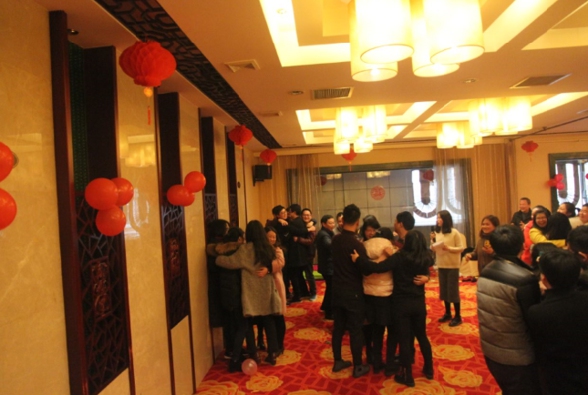 最后,公司工会安排了精彩而又趣味十足的互动游戏,大家都踊跃参加,欢声一片。心有灵犀游戏考验的是两个参与者的默契配合程度,一个人比划主持人给的词语,一个猜是什么,这个环节大家无所顾忌,肢体语言尤为丰富,爆笑不断。在指压板上进行的两组游戏更是给大家带来前所未有的刺激体验,尖叫声、欢笑声混作一团,痛并快乐着,将整个活动气氛推向高潮。最后是全员参与的三人抱团游戏,大家根据主持人的口令,几个人抱在一起,抱在一起人数不对的淘汰,这个环节在游戏中拉近的大家的距离,让平时交往不多的同事也能紧紧拥抱在一起,加强团队精神。