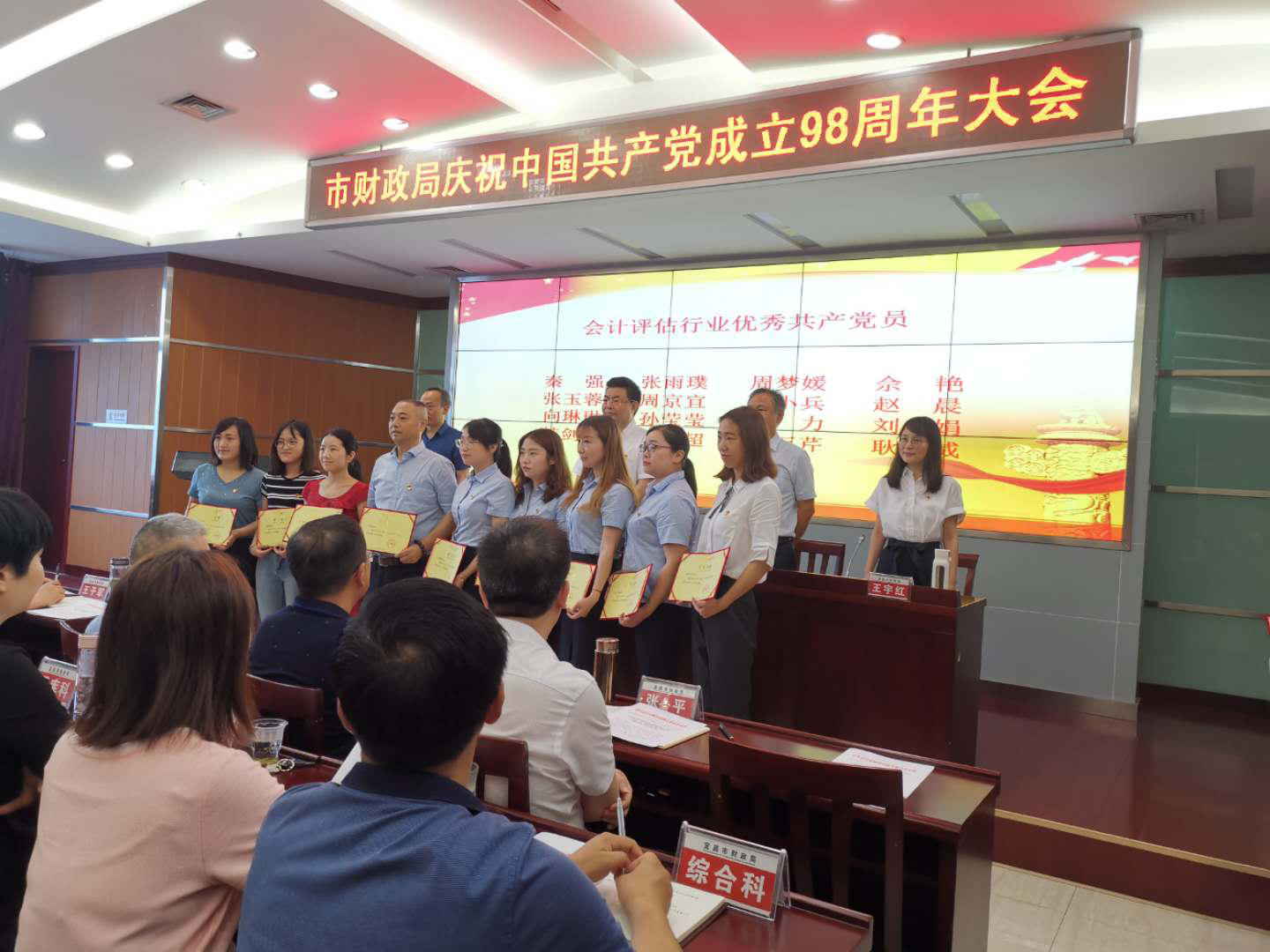 6月28日上午,宜昌市财政局召开庆祝中国共产党成立98周年大会,党组副书记、副局长李仁贵主持会议,党组书记、局长柳兵,党组成员、副局长卢发泉,党组成员、总会计师王宇红等领导出席会议。我公司党员代表秦强、刘菲菲、周梦媛、张玉蓉、张雨璞、佘艳参加了本次会议。